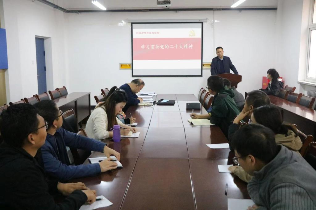 11月10日下午3:00,我院召开了学习贯彻党的二十大精神专题学习会,全体教职工以线下、线上相结合的方式参加了学习会。会议由院党委书记许国宝主持。
