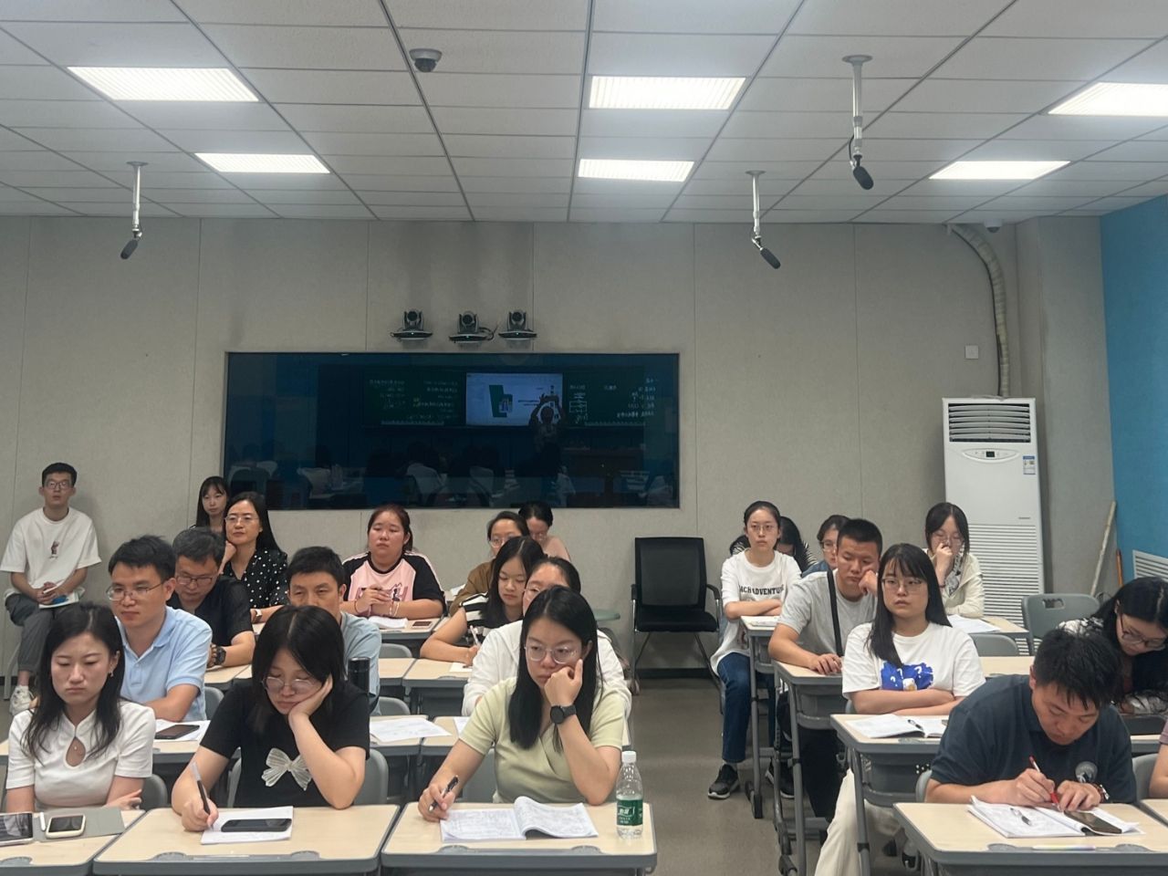 公开课结束后,评课研讨环节随即展开。太原五中物理教研组老师们围绕课程目标达成度、教学方法创新、学生主体性发挥等维度进行深入点评,既肯定了课堂设计的亮点,也提出了可优化的细节。卓越班学生在旁听基础上积极融入交流,结合自身师范生的学习视角,就“如何平衡知识讲解与学生探究时间”、“怎样设计更具层次性的课堂提问”等问题向一线教师请教。