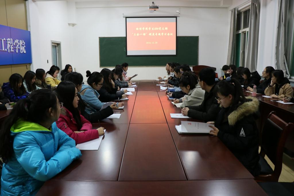 严格落实“三会一课”制度,是推动全面从严治党向纵深发展的重要举措,也是党支部履行教育党员、管理党员、监督党员职责的重要手段。为使党员们充分认识并严格落实“三会一课”制度,我院学生236党支部于2018年12月26日晚6:10在四号楼二层多功能会议室召开“三会一课”制度专题学习会议。学生236党支部党员参加了会议,会议由学生236党支部书记岳文慧主持。