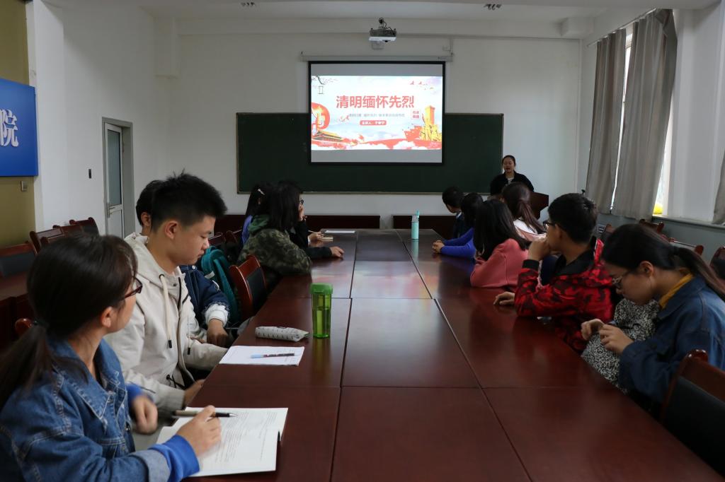 2019年4月9日晚6:10,我院团委组织的“团支书上团课”第四课——“清明缅怀先烈”在四号楼二层多功能会议室开讲。团课由1802班团支书于孝宁主讲,大一、大二各班班长、团支书参加了团课。
