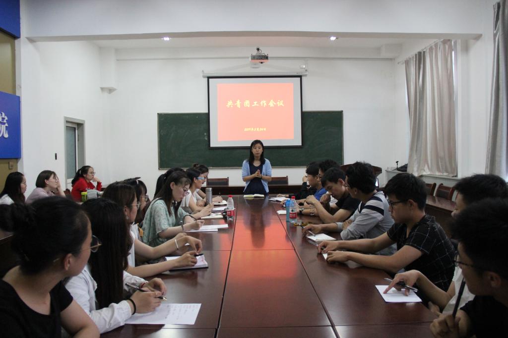 2019年5月24日下午6:40,我院团委在四号楼二层多功能会议室召开共青团工作会议。院团委副书记岳文慧出席会议,院团委学生会主要学生干部、大一、大二各团支书、236爱心社主要负责人参加了会议。会议由院团委副书记岳文慧主持。