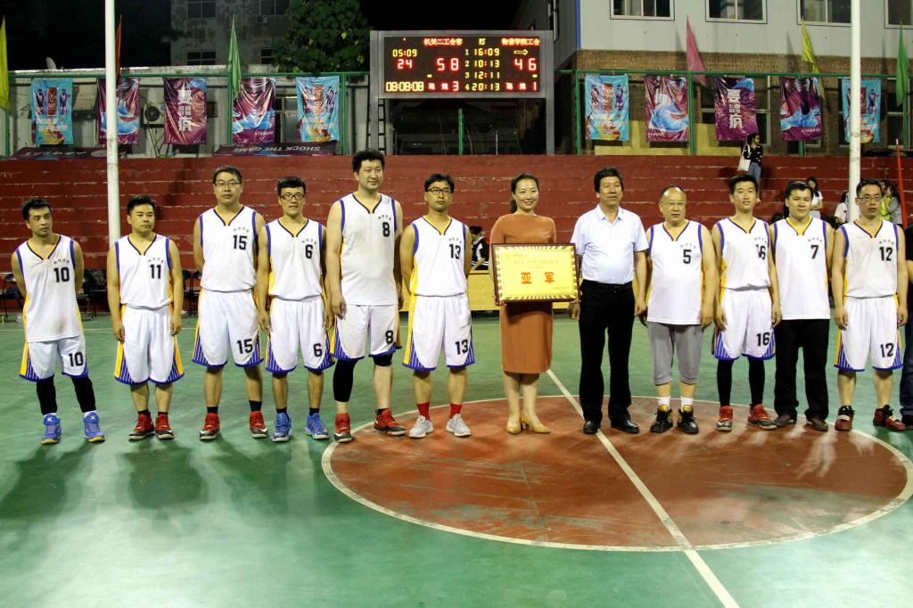 随着裁判一声哨响,双方队员迅速进入对战状态。比赛全程扣人心弦,两队比分你追我赶,球员们的每一次绝妙的抢断,每一个精彩的进球,都掀起了比赛现场一个又一个的高潮。赛场上的加油助威声此起彼伏,一浪掀过一浪。经过紧张而激烈的角逐,我院教工篮球队最终荣获亚军。