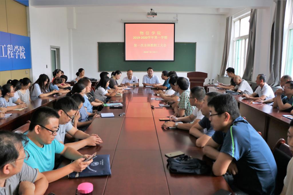 2019年8月31日下午,我院在四号楼二层多功能会议室召开2019—2020学年第一学期全体教职工会议,院党委书记陈向波、院长张进军、院党委副书记王玮、副院长侯俊华出席会议,全体教职工参加了会议。会议由院党委书记陈向波主持。