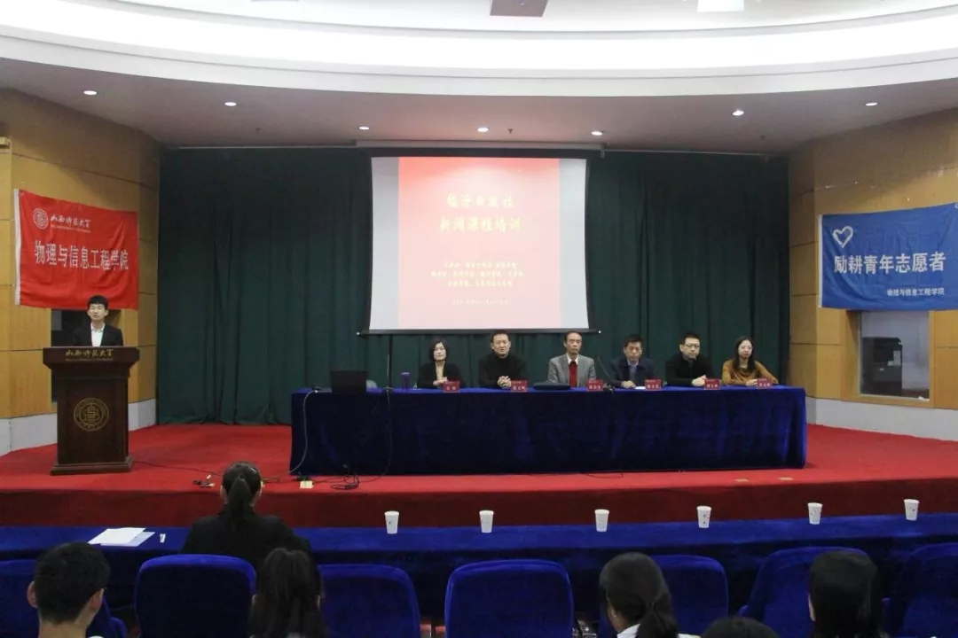 为了进一步加强我院新媒体队伍建设,提高新媒体工作者的综合素质和业务水平,发挥新媒体的宣传作用,2019年11月23日上午8:00,由临汾日报社和我院主办,教科学院、数计学院、文学院、社法学院、马克思主义学院协办的临汾日报社志愿服务队新闻课程培训讲座在科学会堂二层报告厅举行。讲座特邀临汾日报副总编陕文喜,编委、高级记者,时政新闻部主任刘玉林,社会新闻部副主任赵玉峰,视觉新闻部记者景文婷,融媒体中心编辑关婷担任主讲。我院学生会赵欣宇、院学生会常委夏娇和各学院部分学生干部和干事参加了此次讲座。