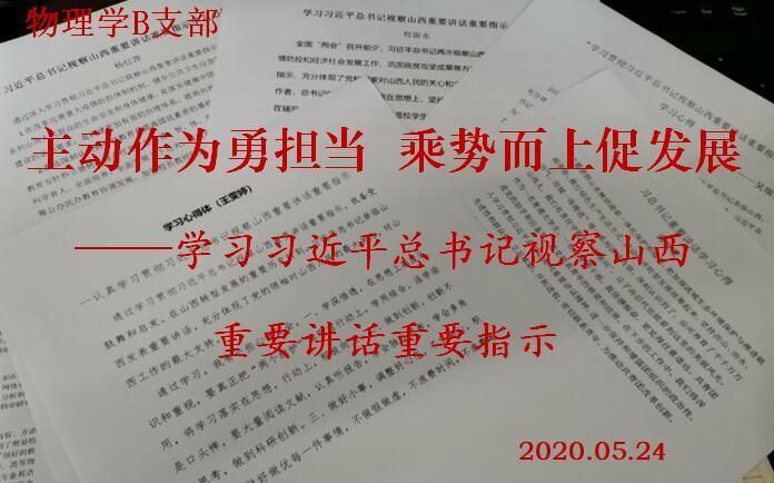 为深入学习习近平总书记视察山西重要讲话重要指示精神,5月24日下午,我院物理学B支部召开了“主动作为勇担当乘势而上促发展——学习习近平总书记视察山西重要讲话重要指示”线上专题学习会。会议由支部书记程留永主持。