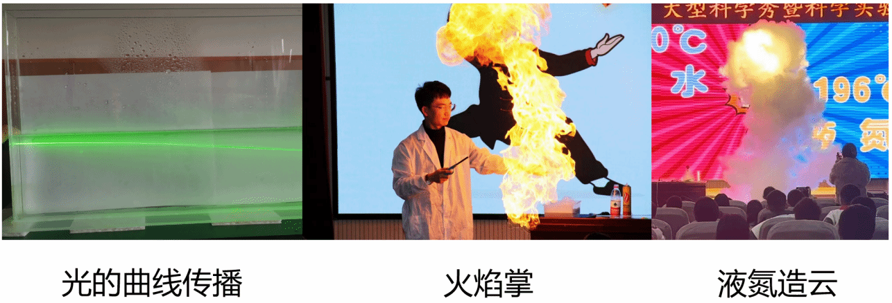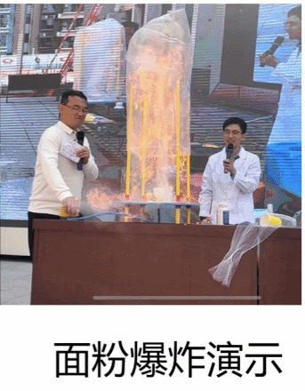 面粉爆炸演示装置:近距离观察面粉的爆燃现象,可进行安全教育。还会发现塑料袋在热空气的作用下升空。